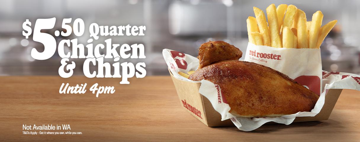 1/4 Chicken & Chips $5.50, $6.50 with 375ml Drink C&C / in-Store Only (Daily until 4pm) excl WA @ Red Rooster App